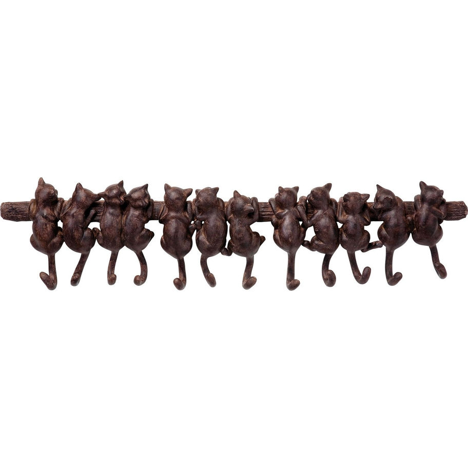 Ist das süß! Lauter kleine Katzenkinder, die sich auf sehr charmante Art und Weise nützlich machen. Ein absolutes Muss für alle Katzenfreunde! Die Schwänzchen der Kleinen bieten sich als Aufhängung für Jacken und Co. förmlich an. Zwölf absolut drollige Aufhängeoptionen. Mit viel Liebe zum Detail gefertigt und in einem warmen Braunton. Ein putziger Hingucker in jedem Ambiente. • Farbe: Braun • Breite: 72cm • Höhe: 18cm • Tiefe: 6cm • Polyresin lackiert • Gewicht: 2,125kg